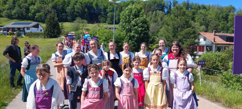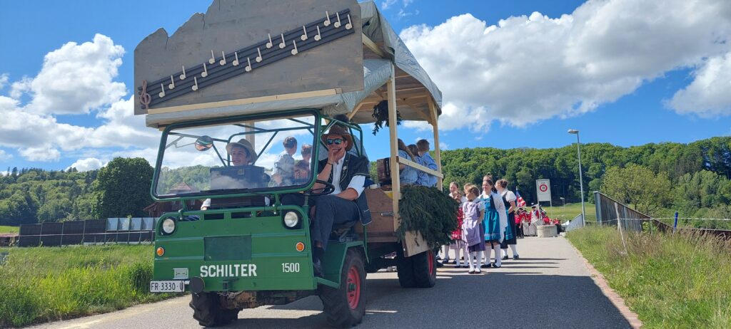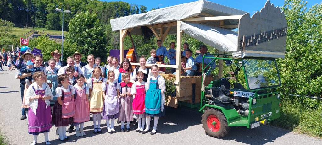 Am 19. Mai 2024 nahmen wir am Umzug des 38. Greyerzer Bezirksmusikfests teil, organisiert von der Musikgesellschaft L’Echo des Monts. Als gemischter Chor, bestehend aus den Kinderjodlern und der Jodlergruppe Gastlosekläng, musizierten wir abwechselnd mit unseren Nachwuchsörglern, die auf unserem geschmückten Bucher spielten. Vielen Dank an L’Echo des Monts für die Einladung und die perfekte Organisation dieses wunderbaren Festes..